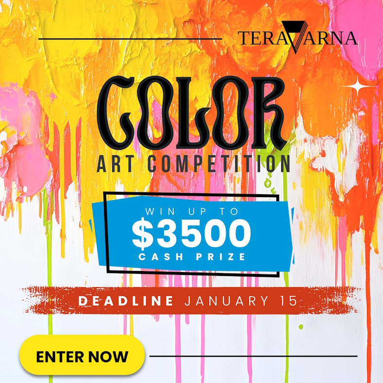 TERAVARNA announces a call to artists for their 10th Color Juried Art Competition! Winners will receive up to $3,500 in cash prizes and a certificate of recognition. From striking monochromes to vivid explosions of hue, show us how you use color to captivate and inspire. Open to all 2D & 3D visual art forms, this online competition invites bold expression across every medium. $15 entry fee. Deadline: January 15, 2026. More info. Contact: emailInternational