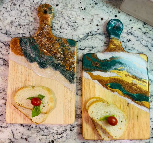 Create your own personal Charcuterie Board! Students will design a unique epoxy coated cutting board using epoxy and metallic pigments to create a beautiful food safe charcuterie board for serving or hanging as art. Students should bring a mask and $25.00 Supply fee paid to the instructor.