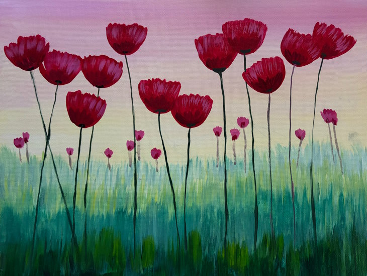 Poppies - Paint and Sip at the Art League of Ocean City! Bring your friend and something enjoyable to drink and snack on while you get creative with your bestie! Rebecca will walk you through a fun evening paint class for you to get creative and be inspired. The image for this evening is a field of Poppies! Ages 21 years+