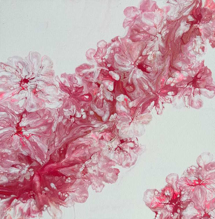 Acrylic Pour Painting is an exciting and innovative way to make beautiful abstract images. Learn techniques, tips and tricks to create amazing, unique pieces. In this class you will create a painting of cherry blossoms. We will use a variety of techniques, such as blowing, swiping, and balloon press. All levels welcome. No prior experience necessary. Please wear clothing that can get stained. We will provide aprons. It might be best to tie back your hair and leave jewelry at home! All materials will be supplied for a $20 fee.