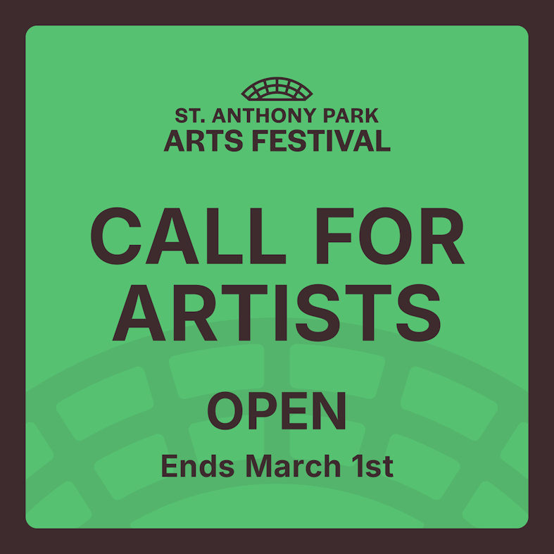 Artists are invited to apply for the St. Anthony Park Arts Festival, held June 6, 2026 at the St. Anthony Park Branch Library in St. Paul, MN. Best in Show + 3 merit monetary awards. Juror: Anna Gaseitsiwe. Eligible media: Painting, Jewelry, Photography, Ceramics, Fabrics, Glass, etc. $20 application fee. Deadline: March 1, 2026. More info. Contact: email or call 612-821-9419.International