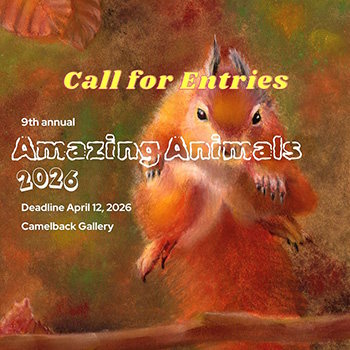 Camelback Gallery announces a call to artists. Cash award to Best in Show, social and art media promotion, virtual award exhibition, award certificates. For this competition we are accepting entries for artwork of all animals, domestic and wild, including sealife & birds. Mediums allowed: All drawing and painting mediums, sculpture, digital art and photography. No AI. $22 for 1 - 2 images. Deadline: April 12, 2026. More info.International