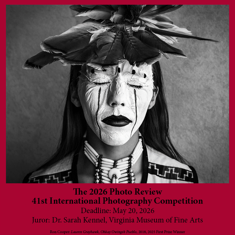 The Photo Review seeks entries for an international photography competition juried by Sarah Kennel, Aaron Siskind Curator of Photography and Director of the Raysor Center for Works on Paper at the Virginia Museum of Fine Arts. $1,000 purchase prize from Haverford College, $2,000+ in other prizes. Prize winners will be exhibited September-October 2026 at The Woodmere Art Museum in Philadelphia, PA. All accepted entries will be included in The Photo Review journal and on the website. All photographs, black and white, color, non-silver, computer-manipulated, etc., are eligible. $40 for three images, $8 each additional. Deadline: May 20, 2026. More info. Contact: email or call 215-891-0214.National