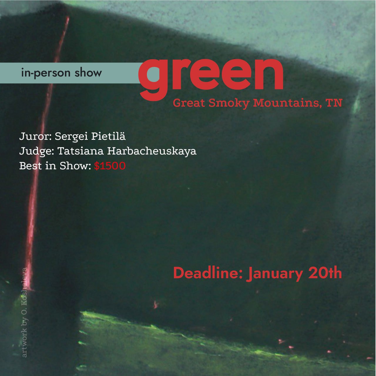 The Red Rock Pastel Society Of Nevada announces a call to artists for a juried art exhibition, February 19 - March 23, 2026 at the King Family Library in Sevierville, TN. $2600 in awards; $1500 Best in Show. Tatsiana Harbacheuskays - judge, Sergei Pietila - juror. Work must be in soft pastel, reflecting the artistic interpretation of Green; needs to be for sale and ready to hang. Non-Member: $30 for first image / $10 each additional. Member: $25 / $10. Deadline: January 20, 2026. More info. Contact: emailInternational
