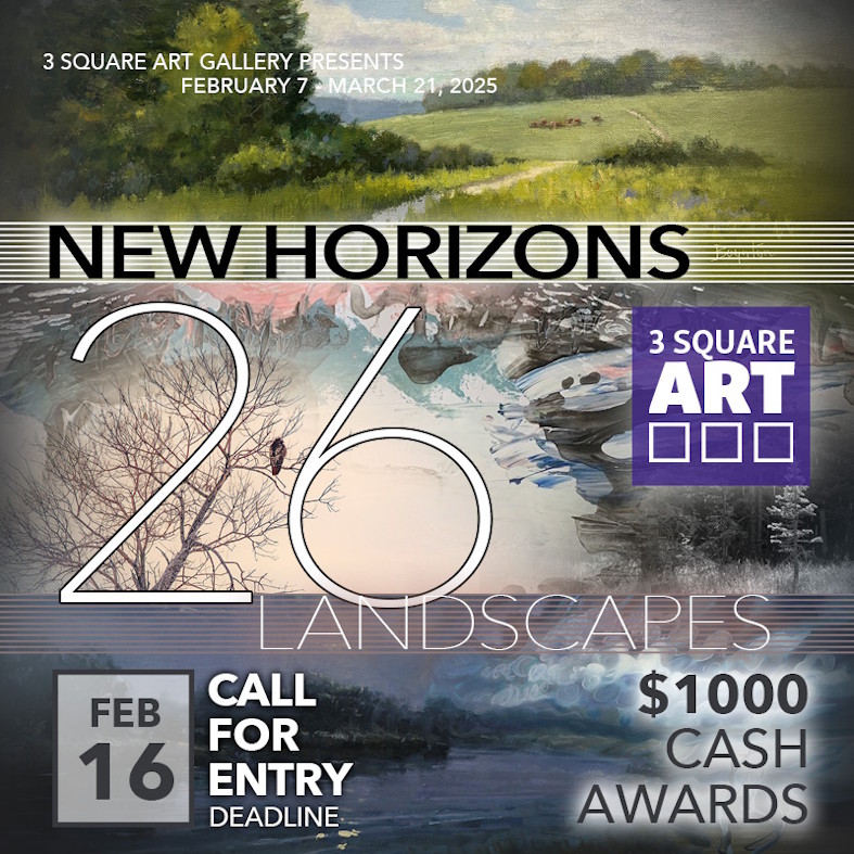 3 Square Art Gallery in Fort Collins, CO announces a call to artists for a juried art exhibition, April 10 - May 22, 2026. $1000 in awards. The theme of this exhibit is landscapes - traditional, contemporary or abstract. Seascapes and cityscapes are also welcome. All media, including painting, drawing, sculpture, photography, printmaking, textiles, and digital art. Works must be able to fit through a 6ft x 7ft doorway. Entries must be original work, independently created, composed and executed within the past 3 years. Artists must be at least 18 years old and may enter up to 5 artworks. Entry fees are non-refundable. Deadline: February 16, 2026 at Midnight. More info. Contact: email or call 970-388-1969.International