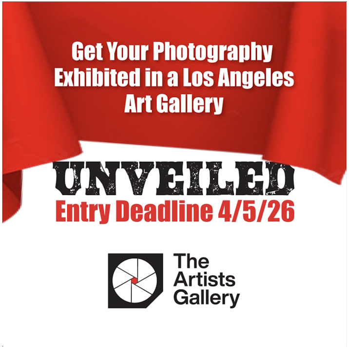 TAG Gallery in Los Angeles, California seeks entries for a juried photography exhibition, April 22 - May 15, 2026. Best of Show receives a Solo show in Lazarus Gallery at TAG, and three honorable mentions. Jurors: Eric M. Renard and Joe Doherty. Entries must be original photographs of the artist's own execution, all artwork must be for sale, and under 30 inches. Open to photographers/artists 18 yrs +. $40 entry fee. Deadline: April 5, 2026. More info. Contact: email or call 323-297-3061.International