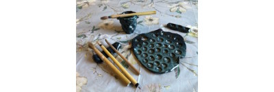 Create your own painting set: a water cup, a paintbrush cup with a brush notch, notched paintbrush holders to keep your brushes lifted off the table, and a palette to mix your colors on. Day 1: Make the pieces with wet clay using hand-building techniques. Day 2: Learn how to glaze the pieces with your choice of colors. Studio Attire: Working with clay is messy. Clay washes off easily, but students are encouraged to wear clothing suitable for studio work. Completed pottery will be ready for pickup approximately 2-4 weeks after the final class. Shipping is available upon request for an additional fee of $15 per small box.