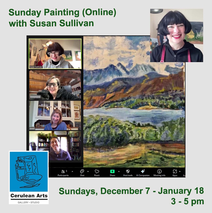 Take an energetic painting journey with Susan Sullivan in this live Zoom Sunday class! Learn the basics of direct oil painting including composition, color mixing and paint handling. Create paintings from observation based on your own still life arrangements, window view/landscape, self-portrait, and through copying a master artwork. Receive helpful feedback and critique along the way. All levels welcome in this informative and fun class!