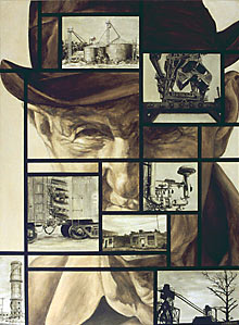 This painting depicts how industry and commercialism have left behind many people, forgotten and unappreciated.