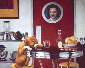 A tongue-in-cheek painting for dog lovers. It was as much fun to paint as it is to view.