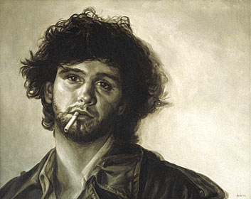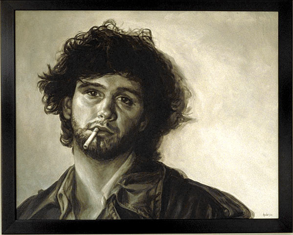 This painting is a telling portrait of my brother-in-law. It depicts his rough outward appearance, yet reveals through his weary eyes a hidden sensitivity and the scars of being disconnected and misunderstood.