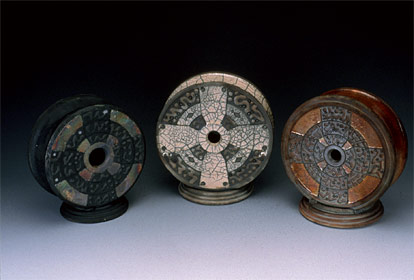 These smaller versions of the Ichirin form are made without the large "handle" across the top, have different designs on both sides, and come in various colors and patterns. As with the larger Ichirin, they tend to reflect an Asian-inspired form with Celtic designs -- not sure why, but it seems to work. They make nice affordable gifts and are easily shipped.