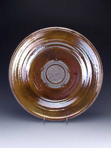 These large, hand thrown platters (designed for stands or to be hung on walls) are rare finds….platters of this size rarely survive the raku process. It took 2 years of experimentation to refine the process to achieve results like these.
