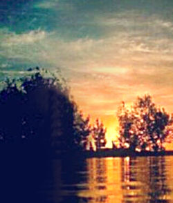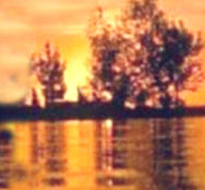The original photo shows the sun not quite in the center, not quite to the right, tending to float visually. I strengthen the composition by moving it farther to the right. [Note: Learning the principle of the "Golden Mean" or "Golden Section" can give you more creativity and confidence when building your compositions.] I am going to remove some trees and move others to bring more continuity and unity to the whole piece (hopefully!) |