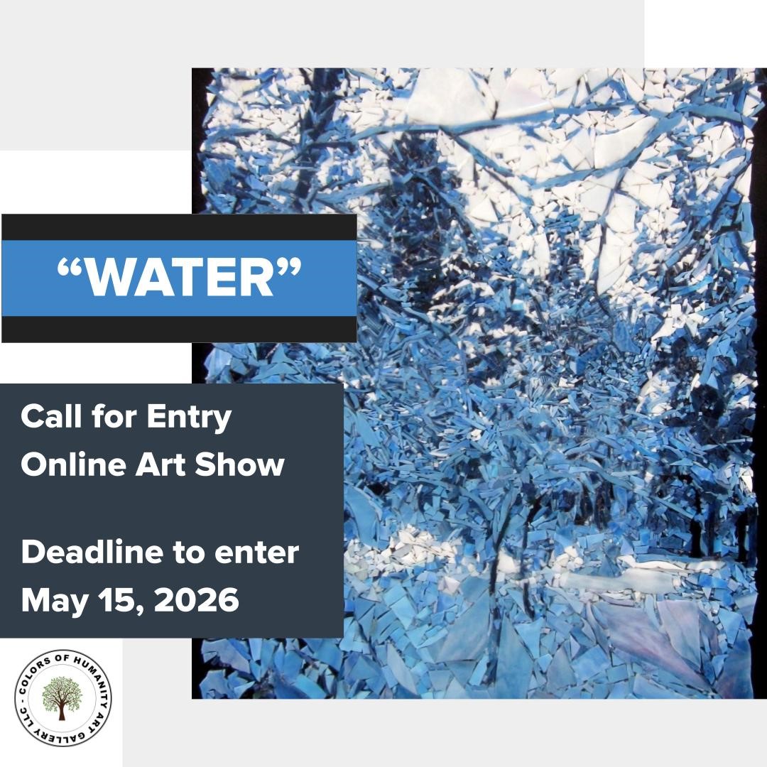 Colors of Humanity Art Gallery seeks entries for an online art exhibition, June 1-30 2026. Best of Show will be featured and receive a cash award. Juror: Janelle Cogan. The sea moderates the Earth's climate and has important roles in the water, carbon, and nitrogen cycles, and is also viewed for its beauty, power, and life. We would like to see your interpretation of water. We will be donating 10% of all entry fees to The Water Project, a 501(c)(3) non-profit organization unlocking human potential by providing sustainable water projects to communities in sub-Saharan Africa who suffer needlessly from a lack of access to clean water and proper sanitation. All artists 18 and over may enter 2D and 3D works in all types of media. $20 for 1 or 2 pieces (You may enter more than once). Deadline: May 15, 2026. More info. Contact: emailInternational