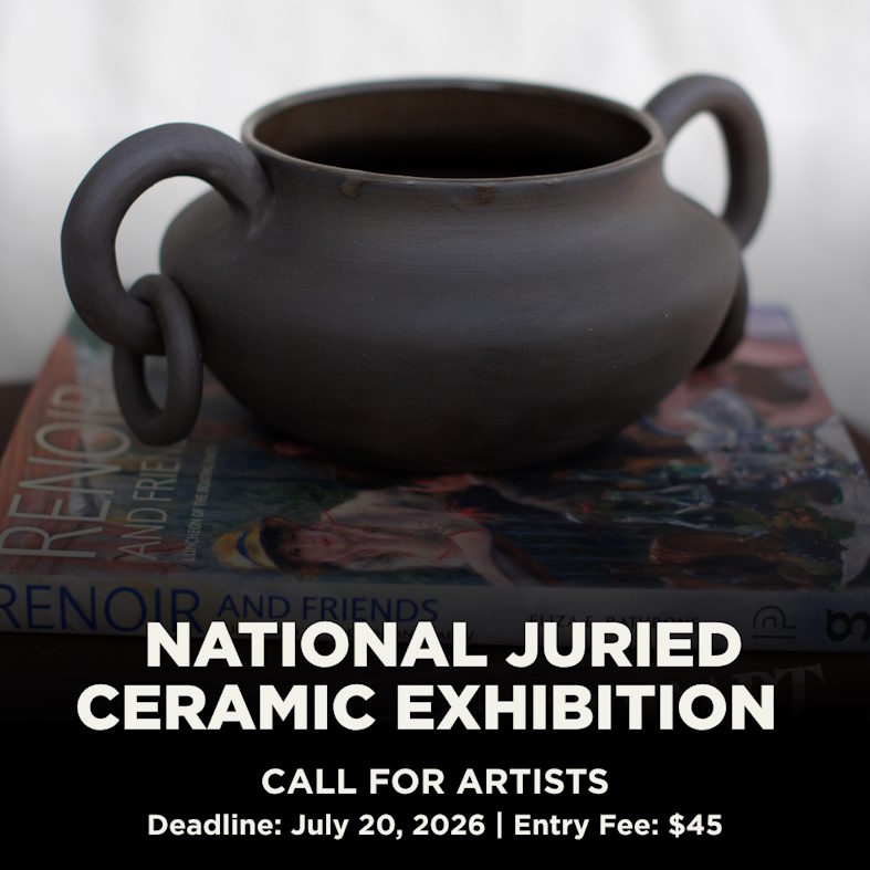The Academy Center of the Arts in Lynchburg, Virginia seeks entries for a juried ceramic exhibition, October 2-30, 2026. Best In Show Award is $1000 and more! Juror: Rice Evans, a clay sculptor whose work explores material hierarchies and Y2K nostalgia, based in Richmond, Virginia. Open to U.S. residents, 18 years or older. All entries must be primarily ceramic, three-dimensional, and designed by the submitting artist. All work must be original (no reproductions), not done under supervision, and not made from kits or patterns. Work should be able to pass through a standard door (maximum dimensions 36" W x 36" D x 48" H) and weigh no more than 75 pounds. The curator reserves the right to deny entry if any work is deemed not suitable for display or too difficult to install. Entries must have been completed after January 1, 2017, and not previously exhibited in a Lynchburg juried art show. $45 entry fee. Deadline: July 20, 2026. More info. Contact: email or call 434-528-3256 ext. 122.National