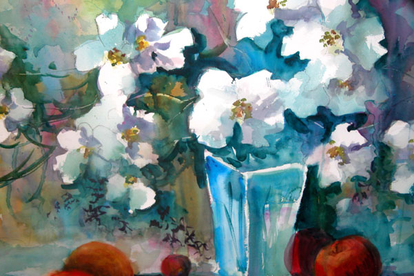![]() copyright © Billie f. Mathis "Dogwoods" watercolor 21" x 28" |