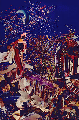 Yesterday, the Moon was high, just as in our days, My Pure Snaggle Puss. In the utter silence where my heart has been choking with agony. For years and years, I have been waiting for someone to come into my life just like you, My Dearest Snaggle Puss. And this sudden arrival of your immaculate beauty, the extraordinary intelligence of your heart, near me, close to me, around me, scattered all of those long years in man-made calamity. Speak of your gentle and warm nature, entering into my soul, touching me, thinking with me, feeling with me, arresting my whole attention immensely. As long as I live I have You. Ought I not to be fulfilled? I am, only with You, My Devoted Soul-Mate, My Pure Darling Snaggle Puss. Where will you be this moment? Where will you be all the year around, all the life around? Today, the Moon is high, just as in our days, My Dearest lonely Snaggle Puss. I have been calling You all over the wild land, constantly...... (This collage was started in 1993 and finished in 1999.) |