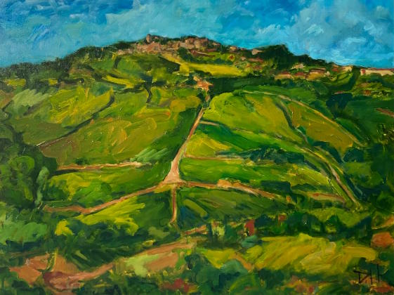 8-day Sketching & Painting Retreat at Dievole Wine Resort, Tuscany. Surrounded by panoramic views and the charm of a 900-year-old winery, you’ll be immersed in the perfect setting to create art from the heart. Most meals, wine, lodging, tours and instruction included. Any medium, all levels welcome. Plus a sketchpad, sharpie, and small watercolor set is recommended, especially for beginners. Karen will demonstrate sketching with enhanced watercolor washes. Then she’ll guide you in developing those initial sketches into expressive small paintings on canvas boards. Through daily demos (in oil and sharpie) personalized instruction, explore how to build compelling compositions, simplify color theory, infuse your travel sketches & paintings with your own unique voice. Hosted by Il Chiostro Workshops.